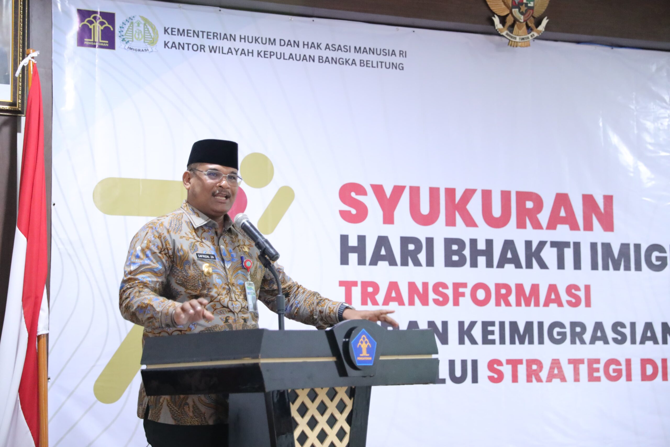 “Misalnya paspor, saat ini masyarakat tak perlu menunggu berhari-hari dalam proses pembuatan paspor, namun kini proses pembuatan paspor bisa selesai hanya dalam satu hari,” ujar Pj Gubernur Safrizal saat memberikan sambutan pada acara Syukuran Hari Bhakti Imigrasi ke-74 di di Kantor Wilayah Kemenkumham Provinsi Kepulauan Babel, Jumat (26/1).