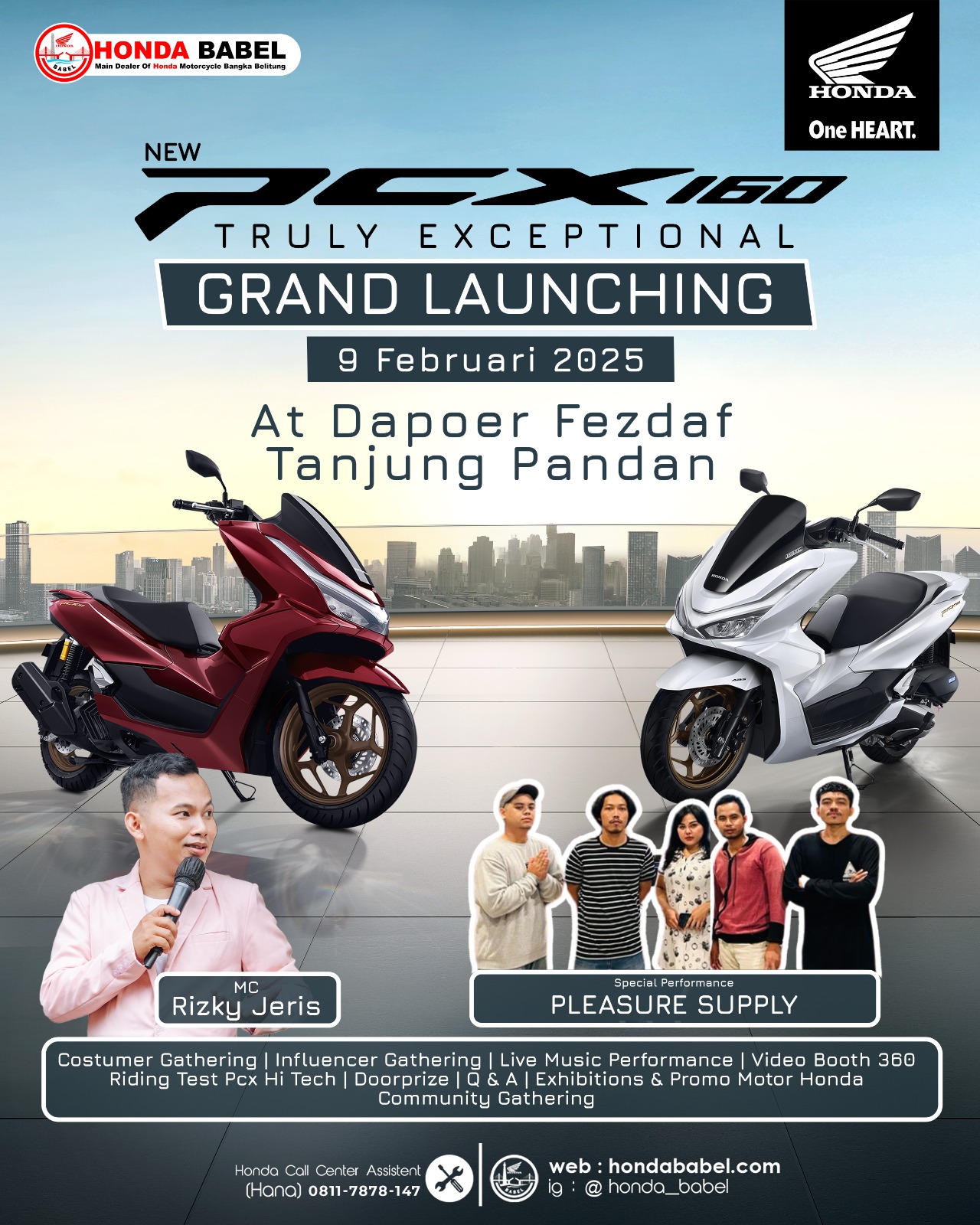 Berbagai kagiatan juga akan hadir menyemarakkan acara tersebut, salah satunya yaitu penampilan live music serta exhibition produk New Honda PCX 160.