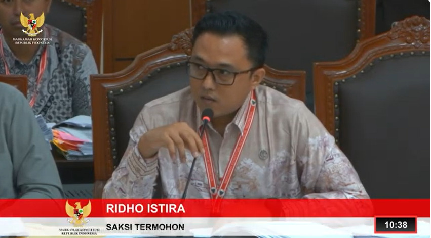 Menurut Ridho, penegasan tidak adanya saksi Pemohon saat pembukaan kotak suara karena tertukar tersebut perlu disampaikan di muka sidang, sebab Pemohon mendalilkan dalam gugatan bahwa saksi Pemohon yang bernama Ekhsan melihat langsung pembongkaran kotak suara.