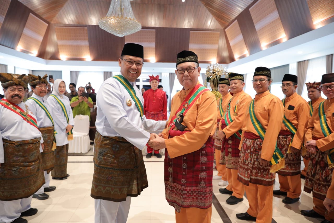 Pj Gubernur Sugito Kukuhkan Pengurus Lembaga Adat Melayu Negeri Serumpun Sebalai Masa Bakti 2024-2029