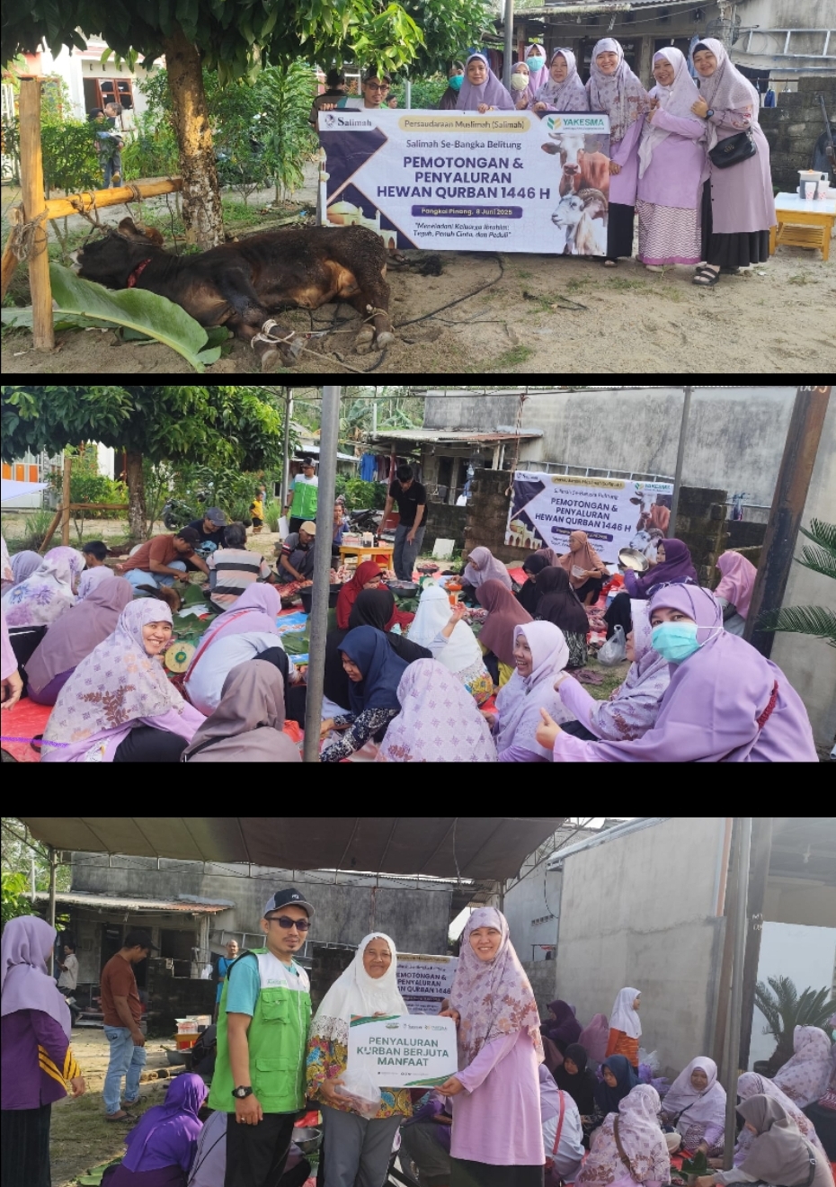 “Alhamdulillah atas upaya bersama dan kemudahan yang  diberikan Allah Subhanahu wa ta’ala, PW Salimah Bangka Belitung bekerja sama dengan Yayasan Kesejahteraan Madani (Yakesma) Bangka Belitung, beserta seluruh PD Salimah Se- Bangka Belitung, dapat melaksanakan penyembelihan di tiga lokasi pada Hari Raya Kurban tahun ini.” jelas Meiristia.