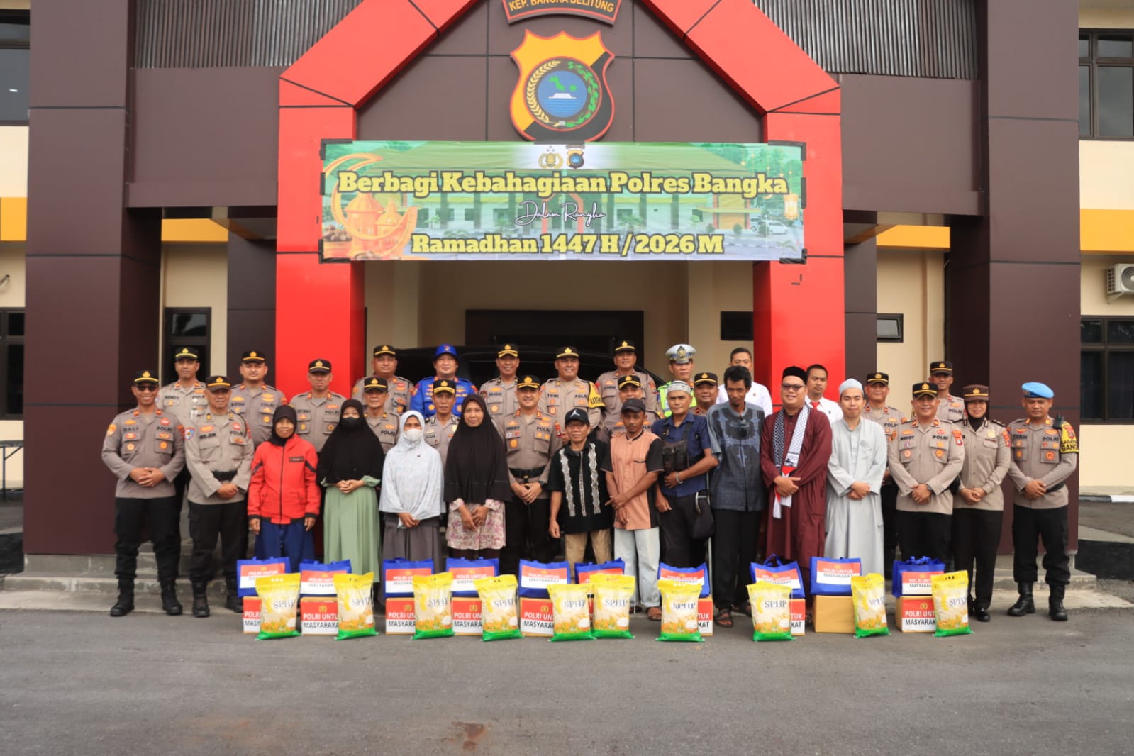 BANGKA – Kepedulian terhadap masyarakat terus ditunjukkan jajaran Polres Bangka melalui kegiatan sosial bertajuk Polres Bangka Berbagi Kebahagiaan. Kegiatan tersebut dilaksanakan di Mapolres Bangka , Selasa (24/2/2026), dengan melibatkan seluruh unsur pimpinan dan personel Polres Bangka.