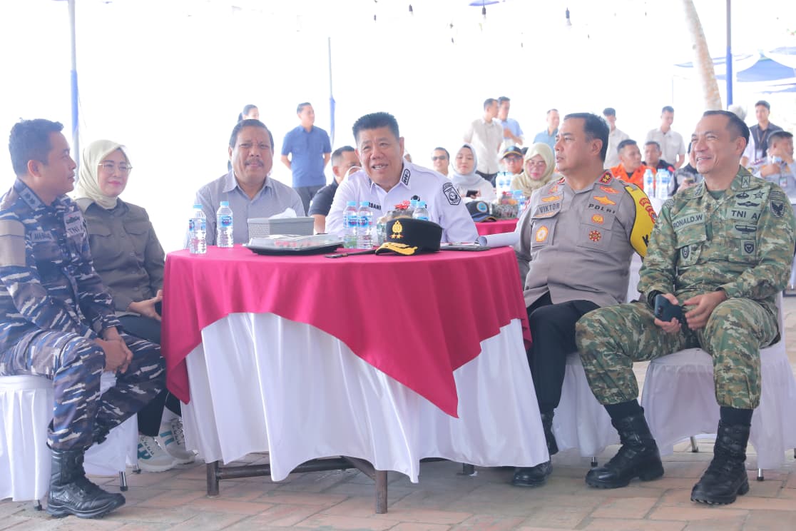 PANGKALPINANG – Gubernur Kepulauan Bangka Belitung (Babel) Hidayat Arsani, Wali Kota dan Wakil Wali Kota Pangkalpinang, serta unsur Forkopimda Babel mengikuti analisis dan evaluasi serentak terkait perkembangan situasi keamanan ketertiban masyarakat terkini dan monitoring pelayanan perayaan Idul Fitri 1447 H Tahun 2026 pada objek wisata yang ada di seluruh wilayah Indonesia. Kegiatan Analisis dan Evaluasi (Anev) secara zoom meeting ini berlangsung di Pantai Wisata Pasir Padi, Pangkalpinang Selasa (24/3/2026).