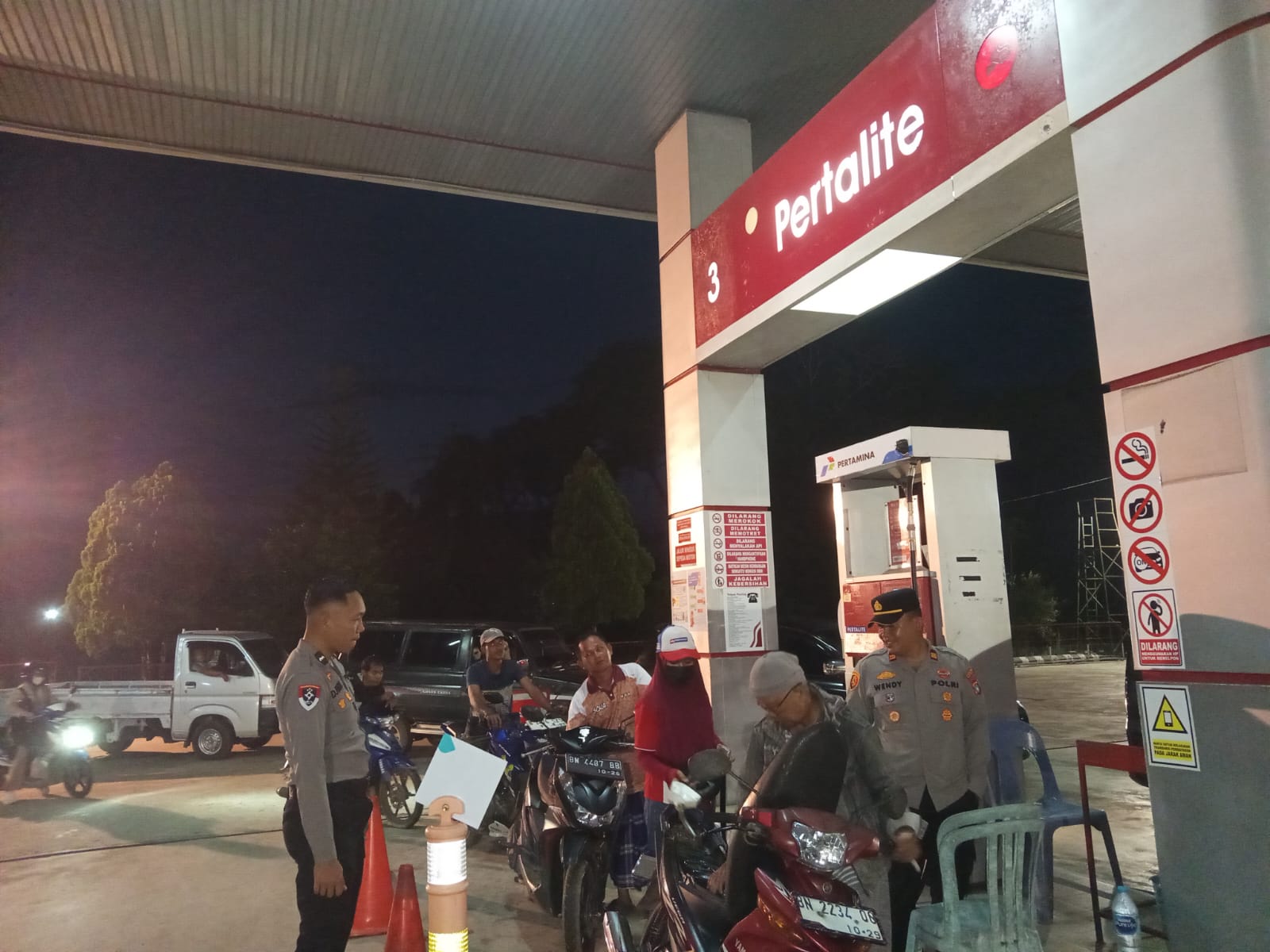 Personel kepolisian mendatangi, SPBU untuk memantau langsung kondisi stok serta situasi di lapangan.